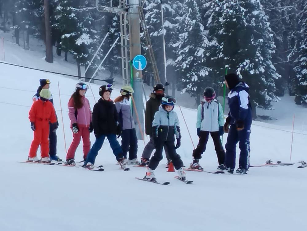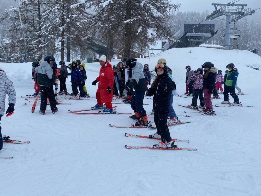 Après un bon déjeuner, les élèves se sont rassemblés par groupes de niveaux. Leurs moniteurs les ont conduits au pied des pistes en navette (5 minutes en bus du centre) pour leur premier cours.