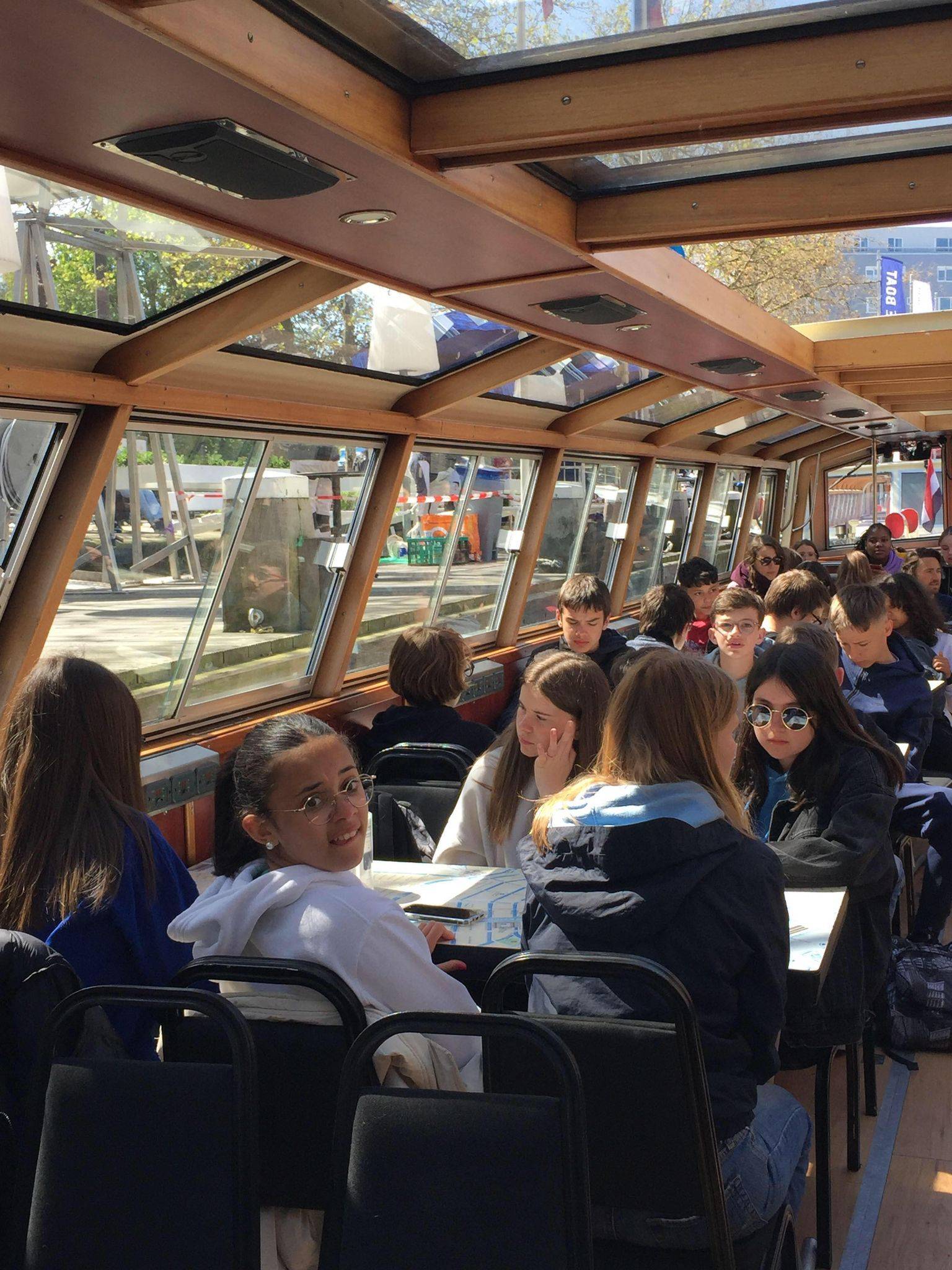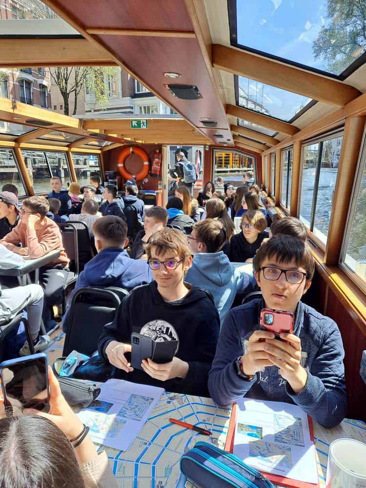 Cet après-midi, tous ont eu la chance de monter à bord d’un bateau pour une visite commentée sur les canaux d’Amsterdam, ce qui leur a permis de découvrir les principaux monuments de la ville et l’architecture insolite de leurs maisons.
