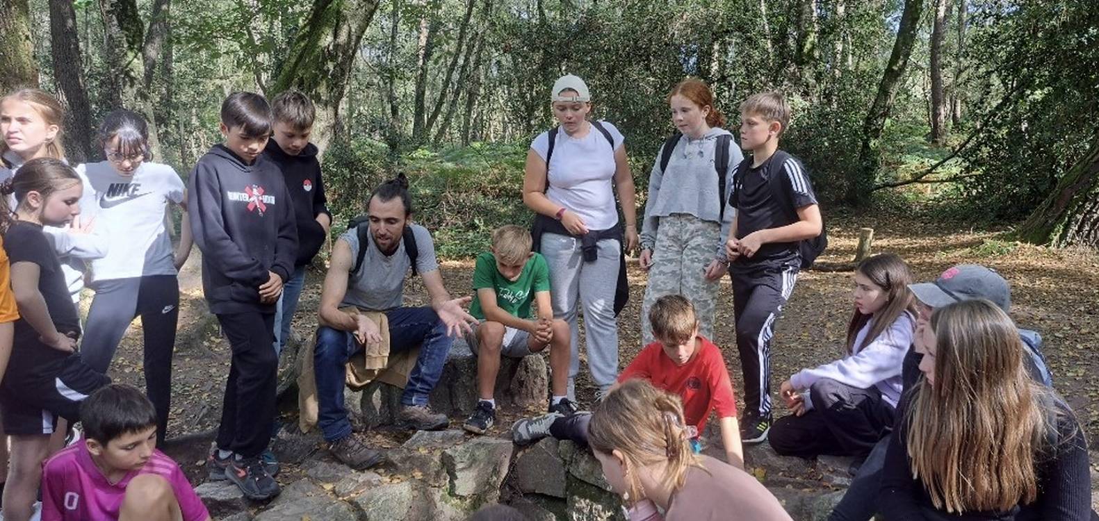 Nous sommes partis pour une balade guidée et contée dans le Val sans retour, domaine de la fée Morgane. Les élèves ont découvert l'arbre d'Or, l'étang du Miroir aux fées, le rocher des faux amants et le siège de Merlin.