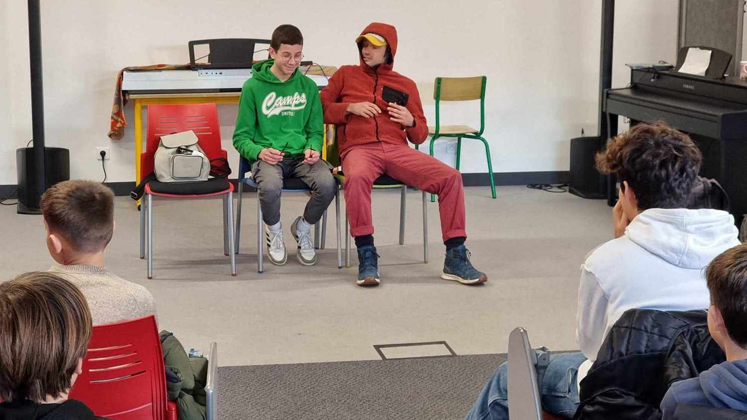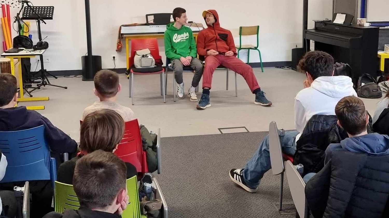 Plusieurs élèves de 4ème sont montés sur scène ; ils ont ainsi su habilement se mettre dans la peau de personnages, et argumenter pour défendre leur point de vue.