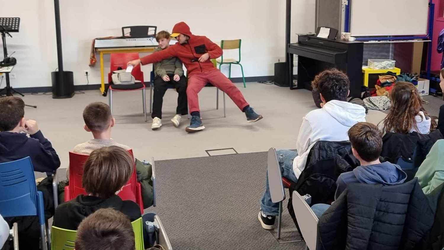 Ce lundi 8 janvier, les classes de 4ème ont pu jouer le jeu, et participer activement à un spectacle de théatre, au sein du collège.