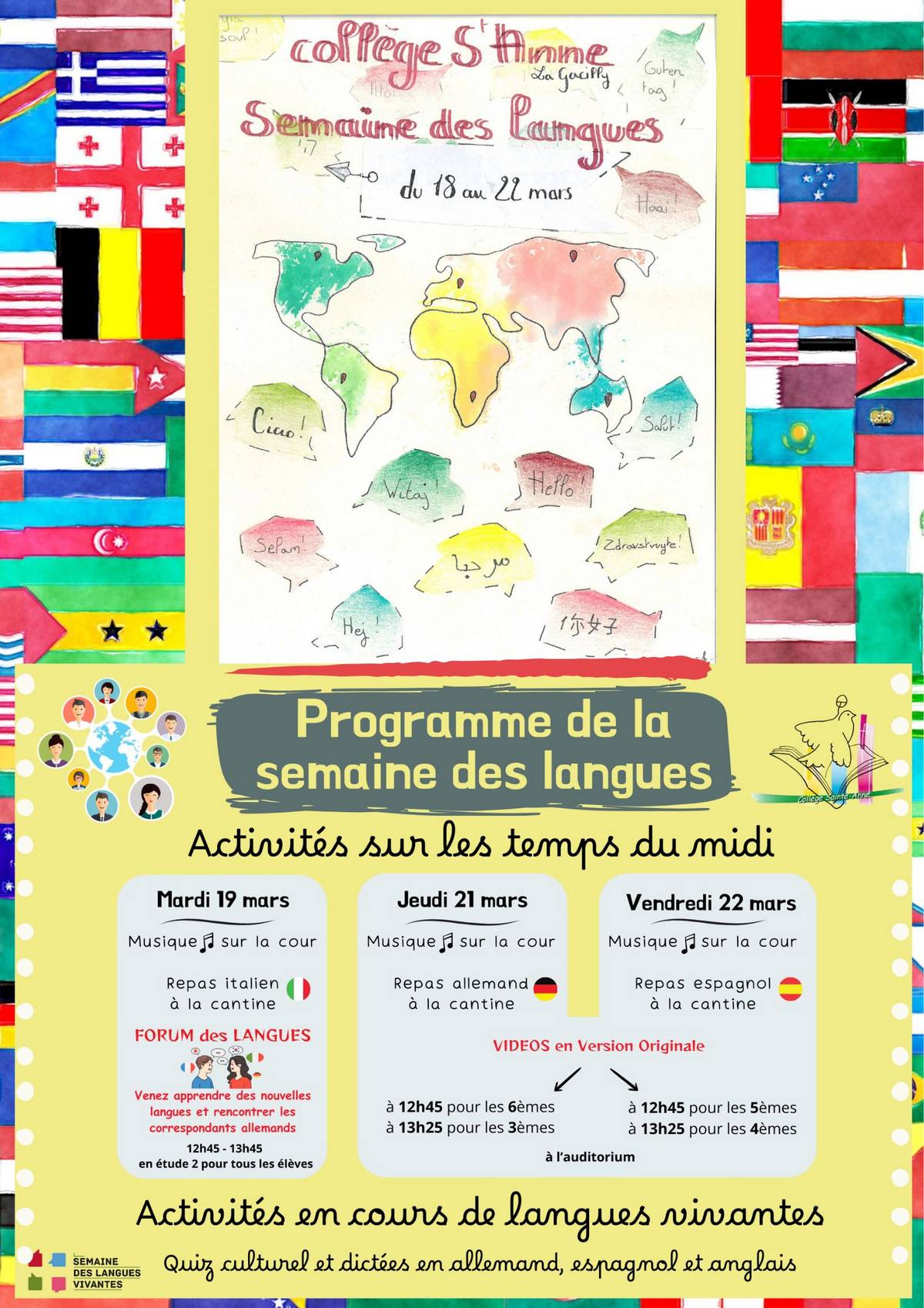 Dans le cadre de la semaine des langues, les professeurs de langues du collège ont organisé un forum des langues qui s'est déroulé mardi 19 mars sur le temps du midi en salle d'étude.