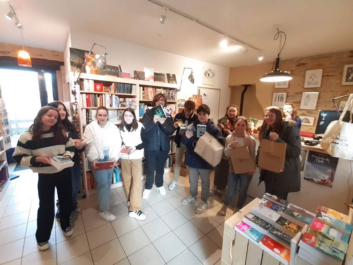Ce fut l’occasion de mieux comprendre le métier de libraire mais aussi la chaine du livre. Cet échange a été suivi d’une visite à la librairie et chaque jeune a bénéficié d’un bon d’achat de 30€, offert par la région, selon le dispositif « Jeunes en librairie ».