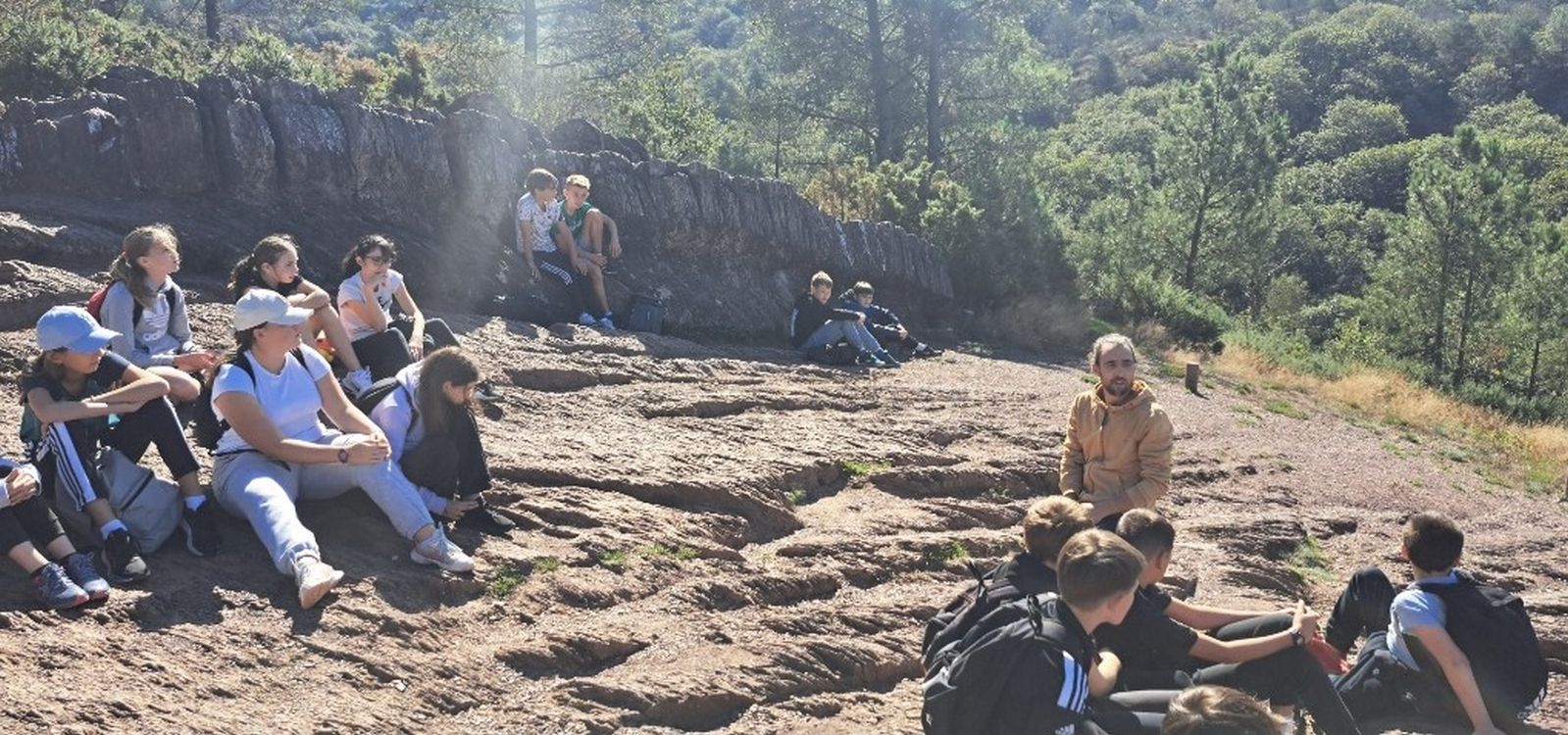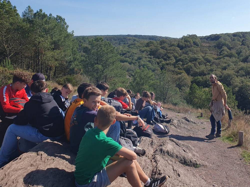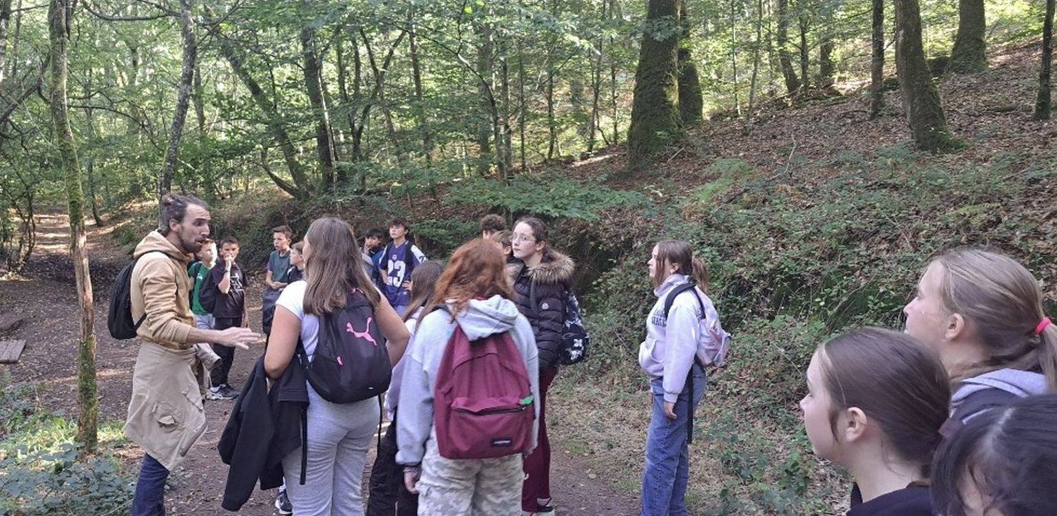 Nous sommes partis pour une balade guidée et contée dans le Val sans retour, domaine de la fée Morgane. Les élèves ont découvert l'arbre d'Or, l'étang du Miroir aux fées, le rocher des faux amants et le siège de Merlin.