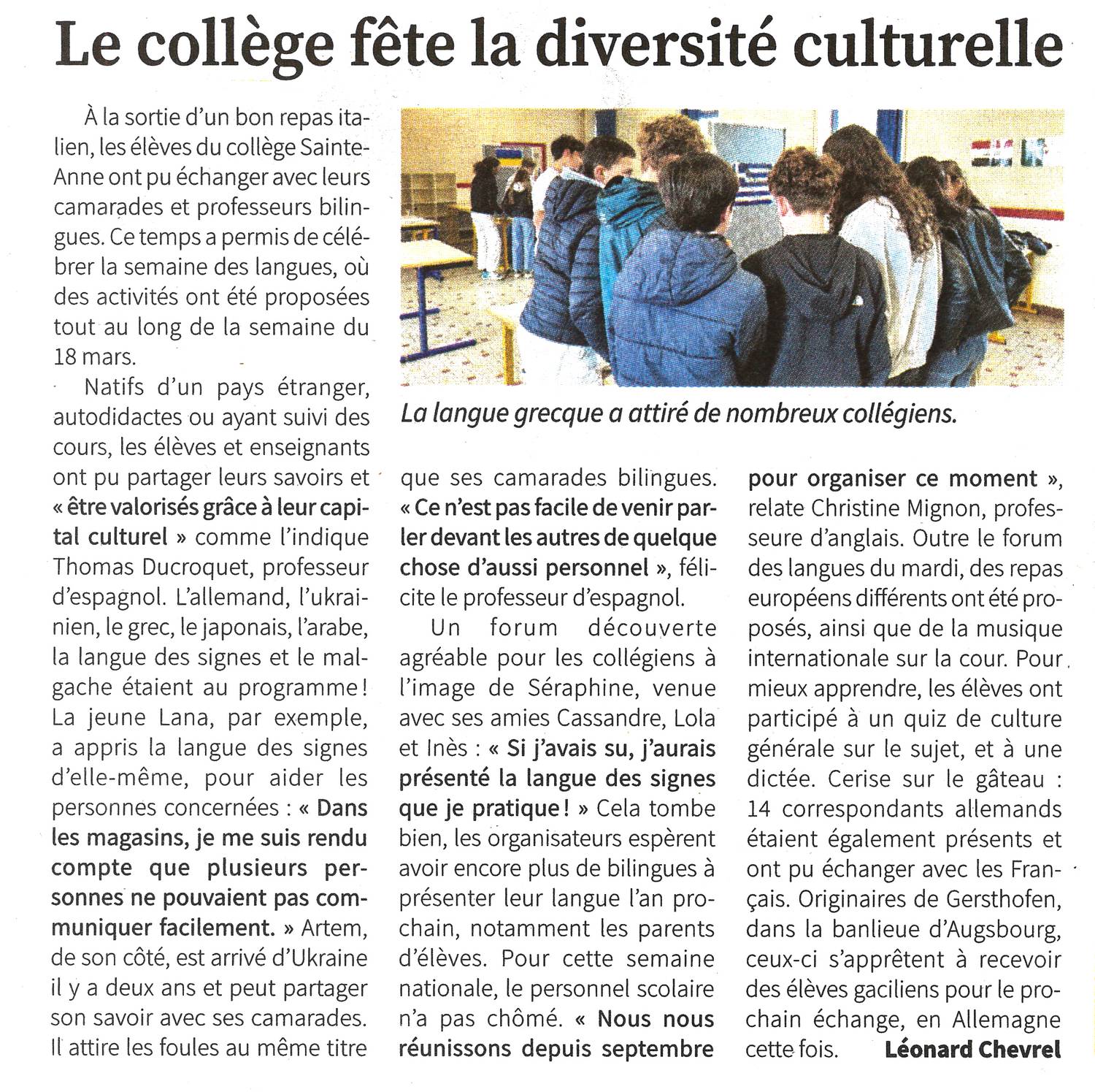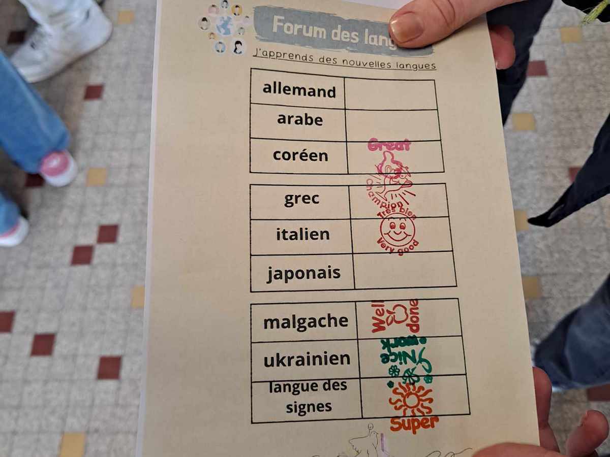 De nombreux élèves se sont montrés très intéressés et sont venus apprendre à dire quelques mots en italien, malgache, coréen, ukrainien, arabe, langue des signes et allemand.